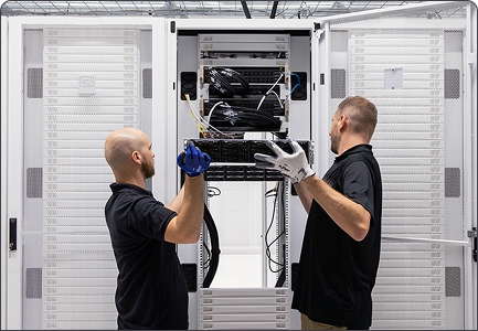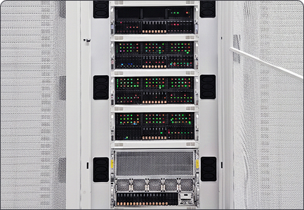 NVIDIA reference-aligned architectures validated for training and inference. Cluster design covering InfiniBand fabrics, high-performance storage (VAST, Weka, DDN), power, cooling and rack layout.